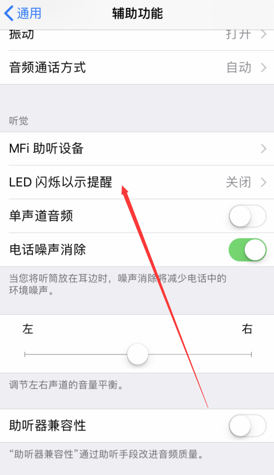 4、进入辅助功能后,点击LED闪烁以示提醒。