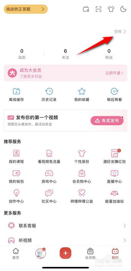 打开手机桌面上的哔哩哔哩,然后点击空间选项。