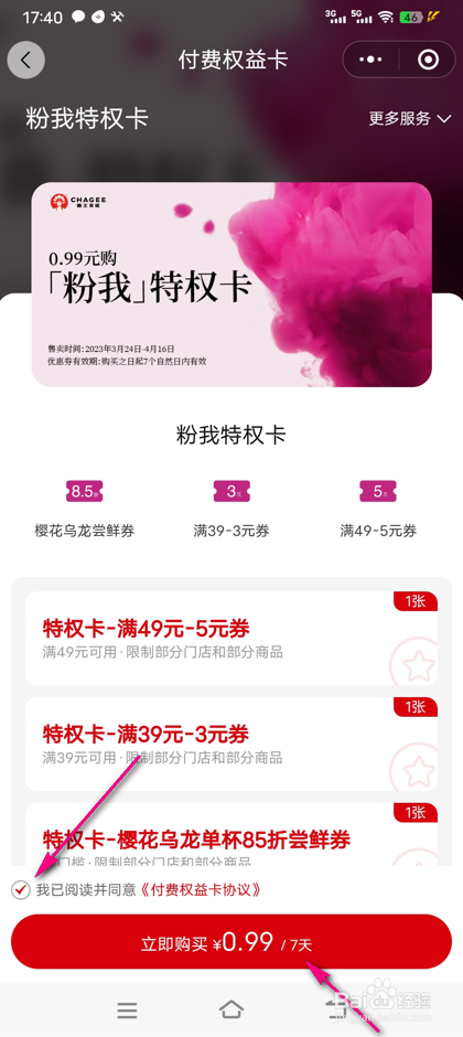 点击勾选我已阅读,点击下方立即购买图标即可。