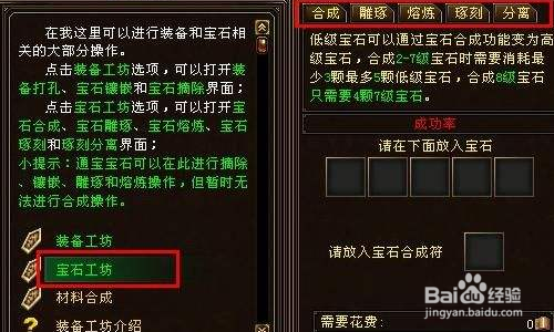 3.打开地图,传到到熔炼的地方,并找到NPC:洛阳彭怀玉,点击宝石工坊,选择减抗石头,点击合成,即可合成。