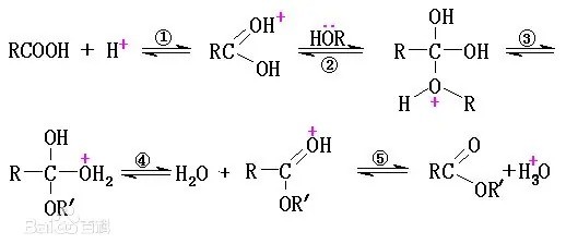酯化反应是一种有机化学反应,用于合成酯化合物。以下是酯化反应的机理图解: