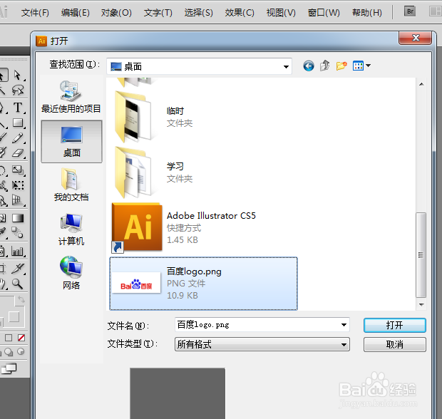 首先打开所需要的软件Adobe Illustrator CS5,然后找出一张百度logo图,可以去百度首页截屏或者在网上搜索。