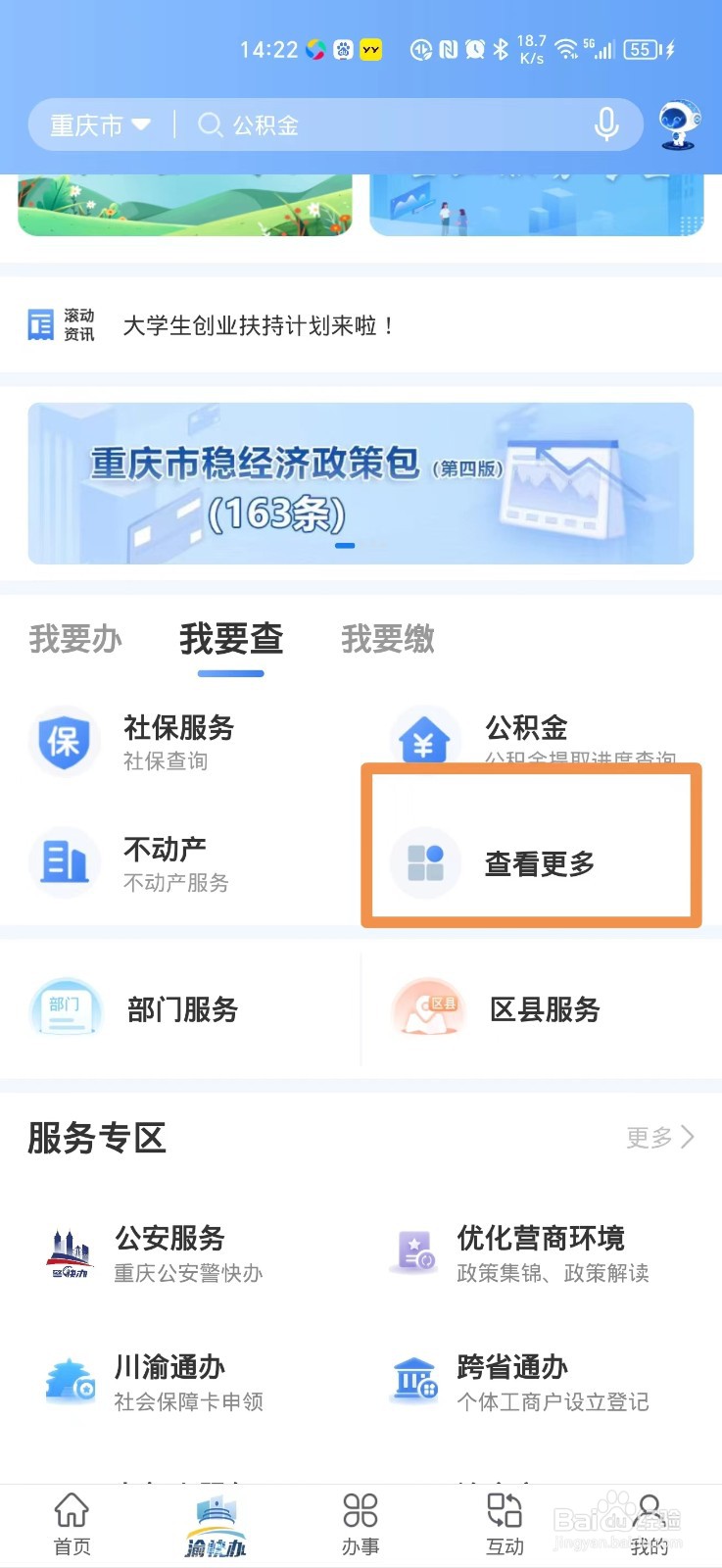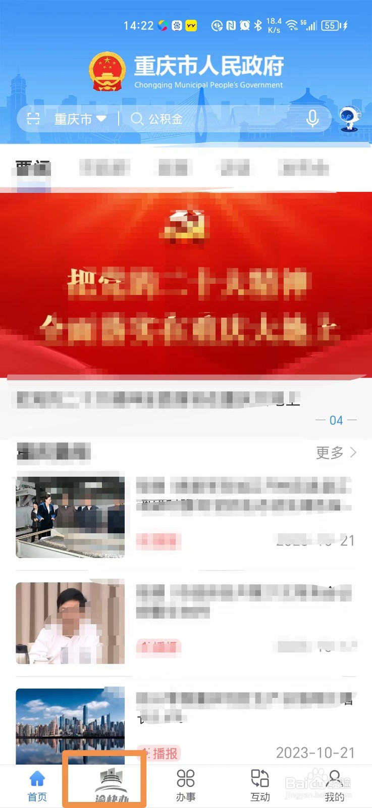 第一步:打开重庆市政府软件,在首页点击【渝快办】