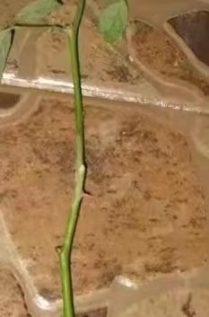 剪一支刚开完花的玫瑰,剪去玫瑰花和径上的叶片,留2-3个枝节长短,