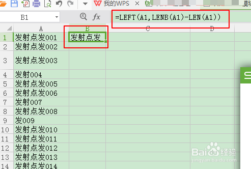 选择相邻的一个字段输入函数=LEFT(A1,LENB(A1)-LEN(A1)),这里的A1是灵活的,根据自己的测试数据来控制,我这里是选择了A1单元格数据测试