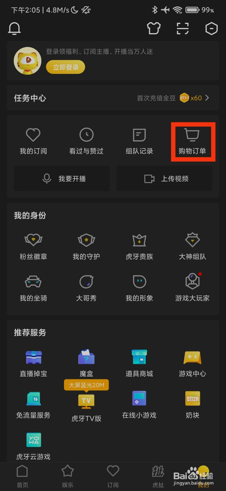 这样我们就可以查看到虎牙直播中的购物订单该选项了