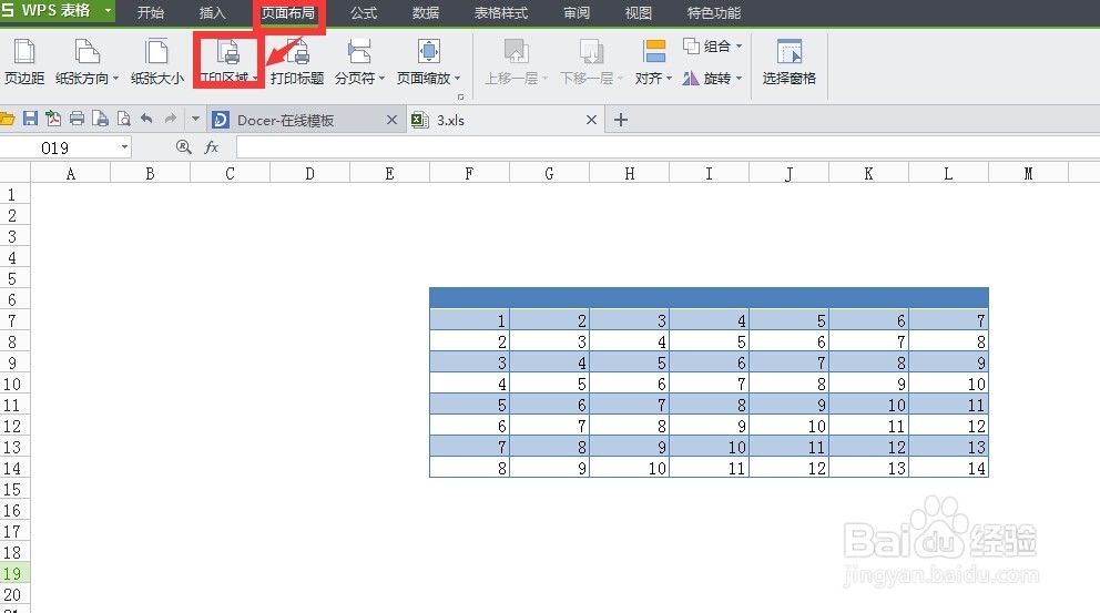 选中需要打印的区域,然后,点击“页面布局”→“打印区域”→“设置打印区域“。
