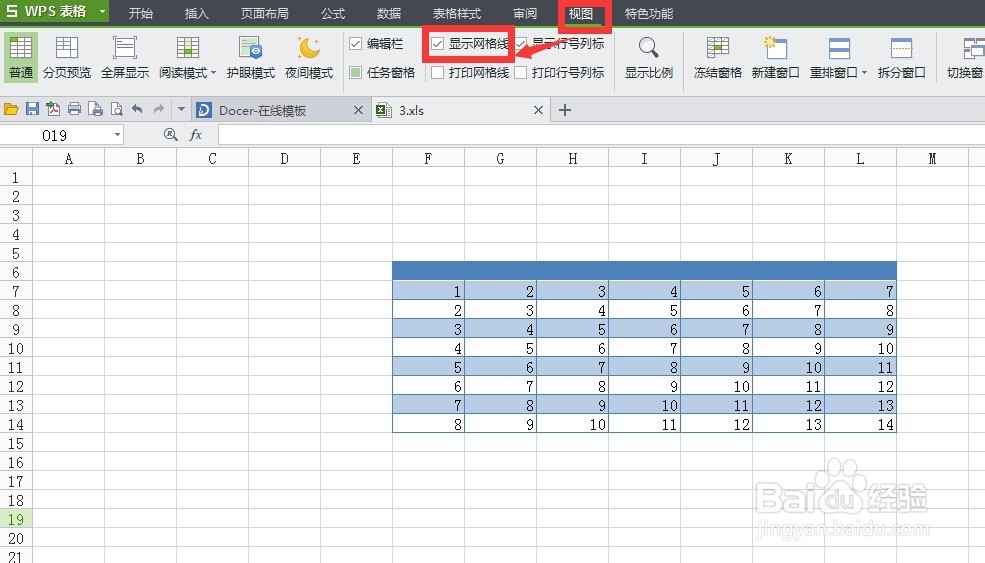 点击“视图”→“显示网格线”,则可以让整个表不显示网格线。