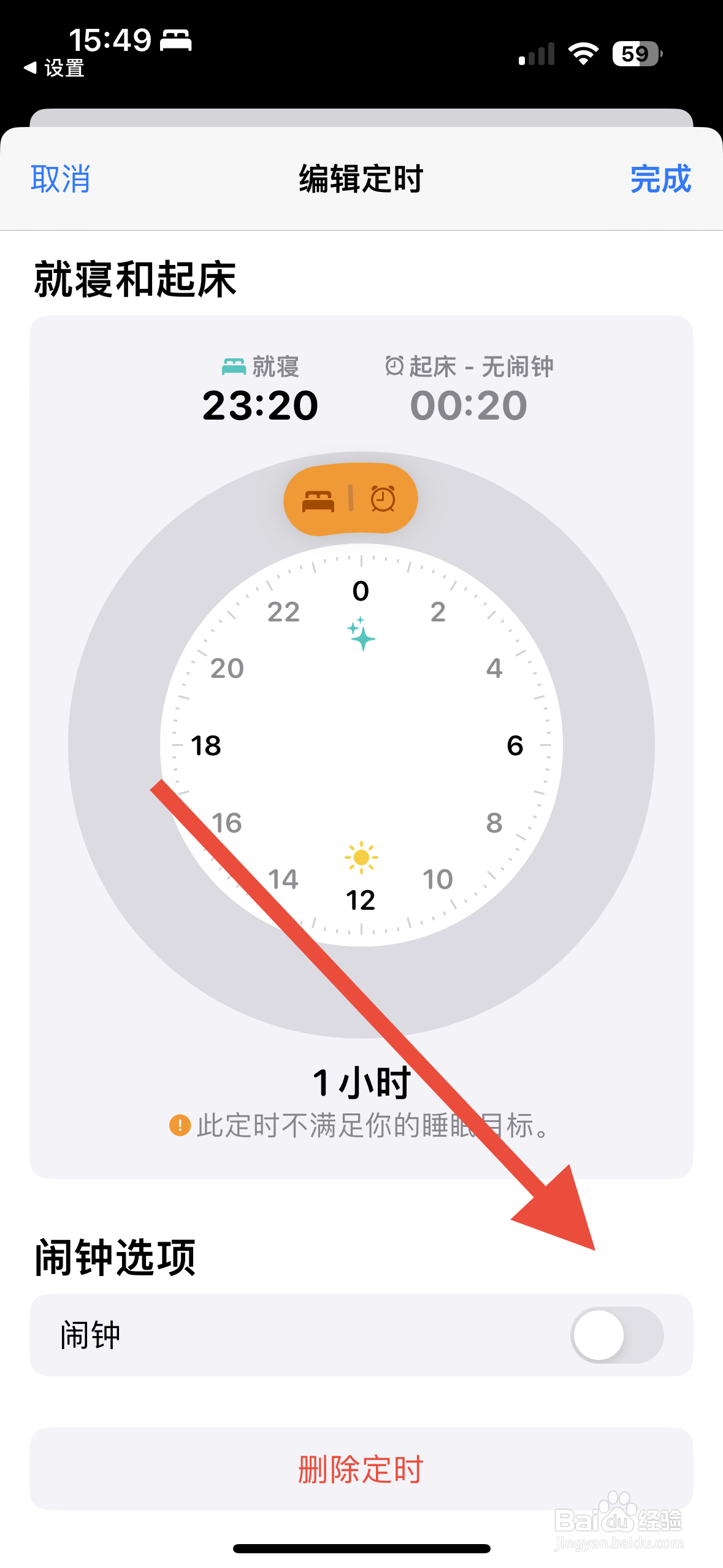 最后我们点击就寝界面把每天的就寝时间按钮也关闭就不会再响了。