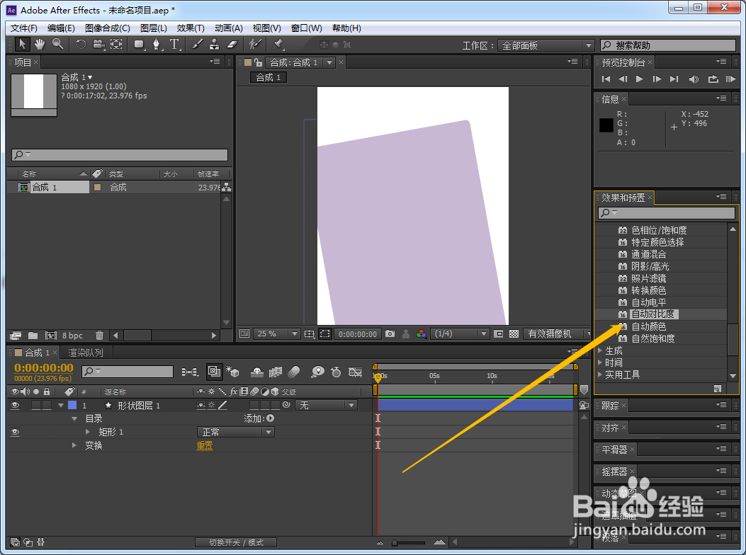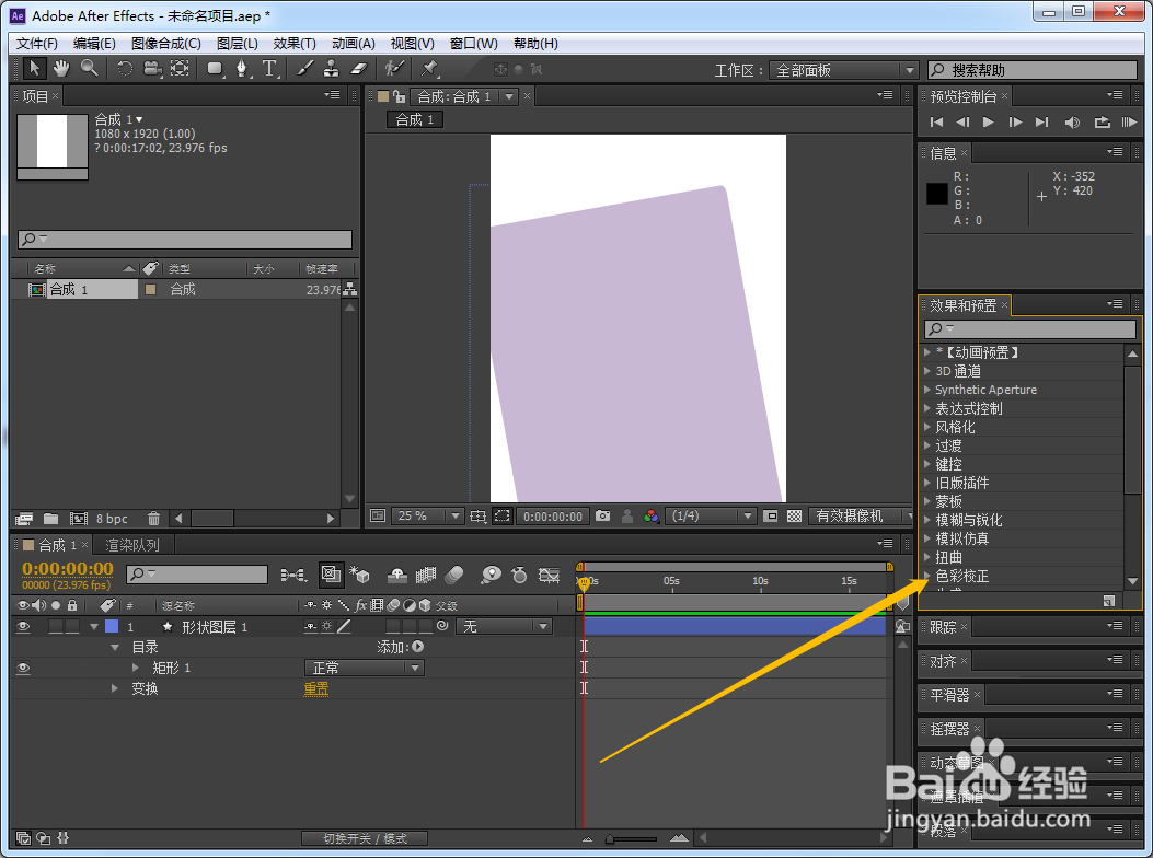 用户使用Ae软件时,可以先找到右边栏的色彩校正,在里面就能调整自动对比度。下面就是一些操作步骤: