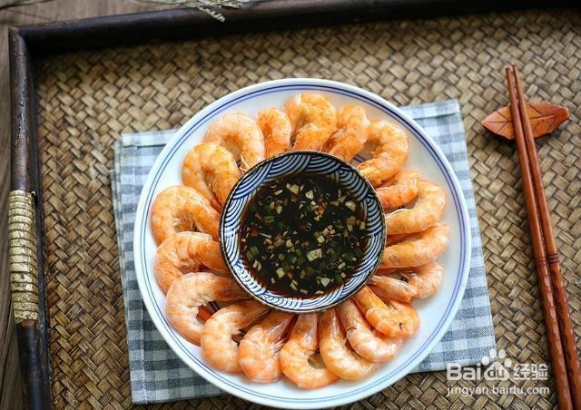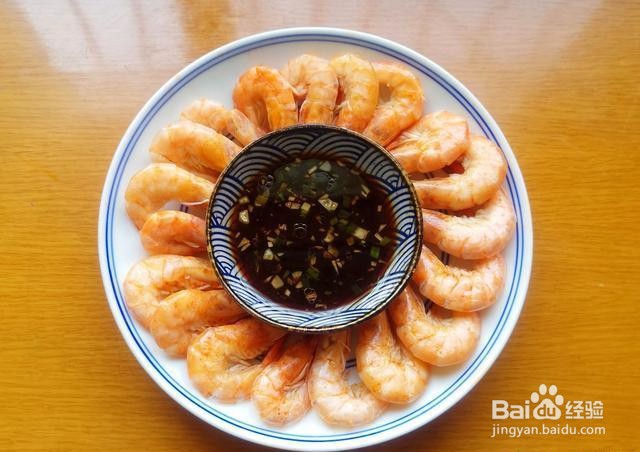 最后将蘸料碟放在盘子中间,把蒸熟的虾子在周边摆一圈,就可以端上桌享用了