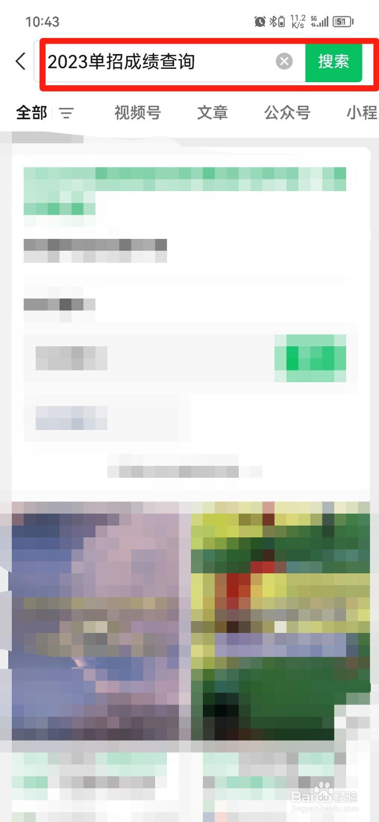 首先,打开微信搜索【2023单招成绩查询】,如图所示位置