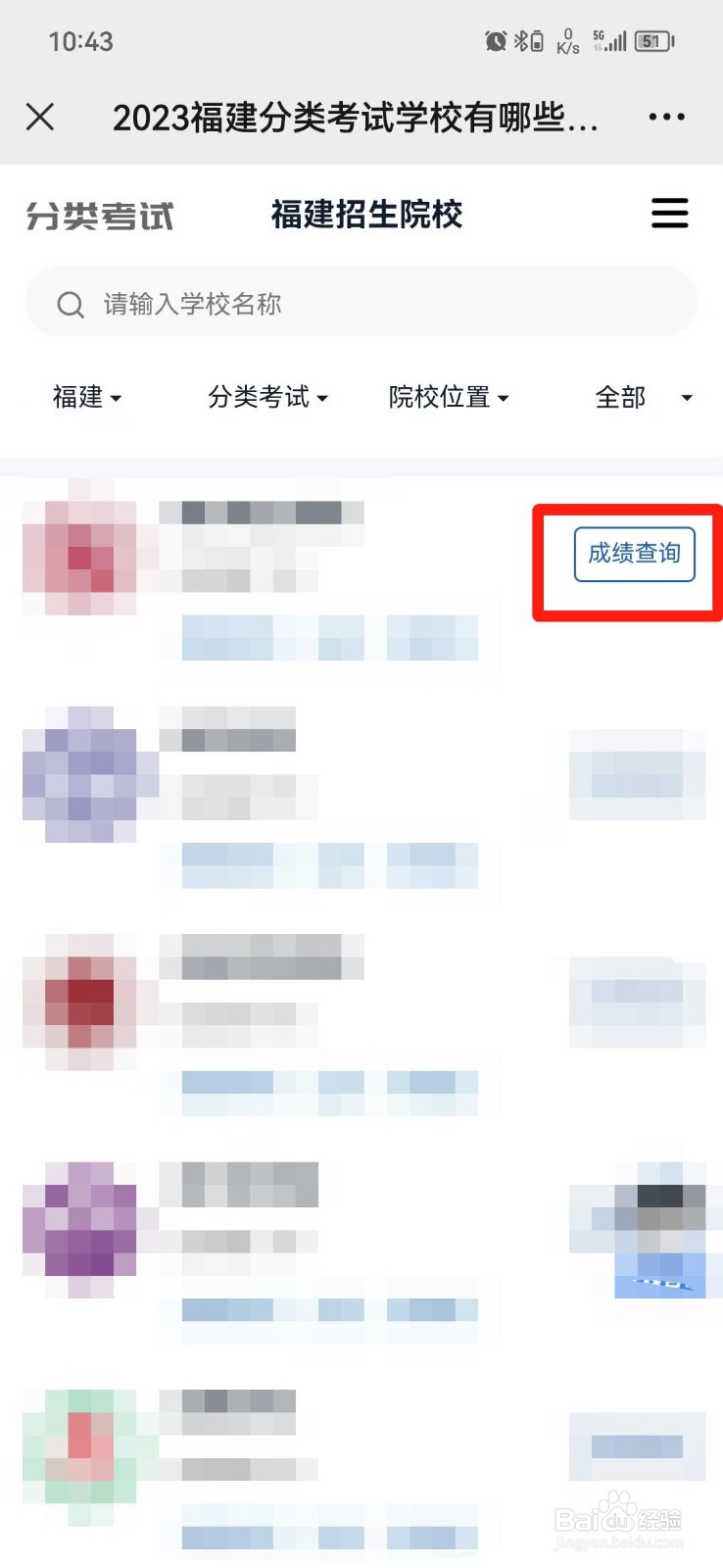 然后,在搜索结果页面点击【成绩查询】,如图所示位置