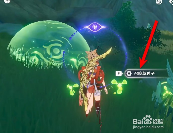 在游戏中靠近绿色屏障,点击召唤草种子。