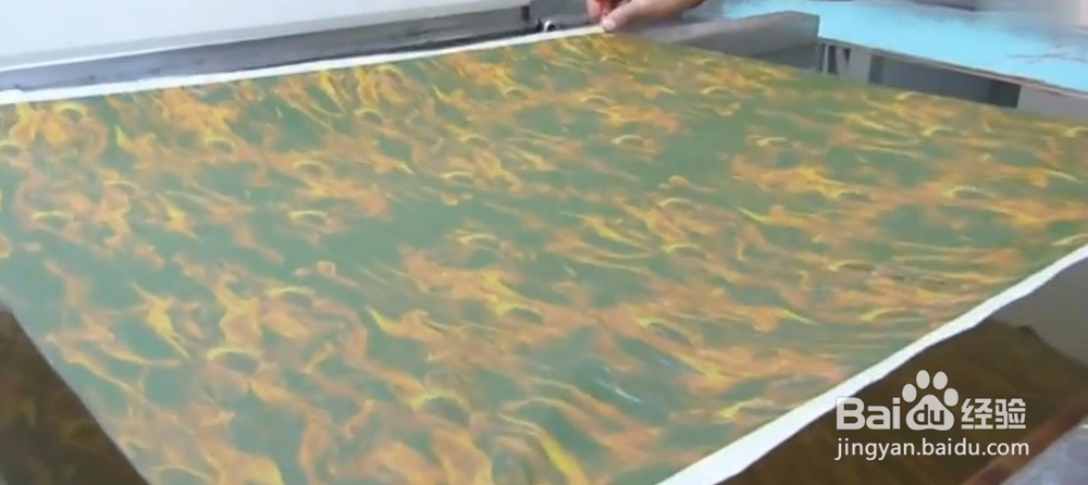 在设备池里,我们两个人把贴花拉直,平平的放入水池中,不要有褶皱