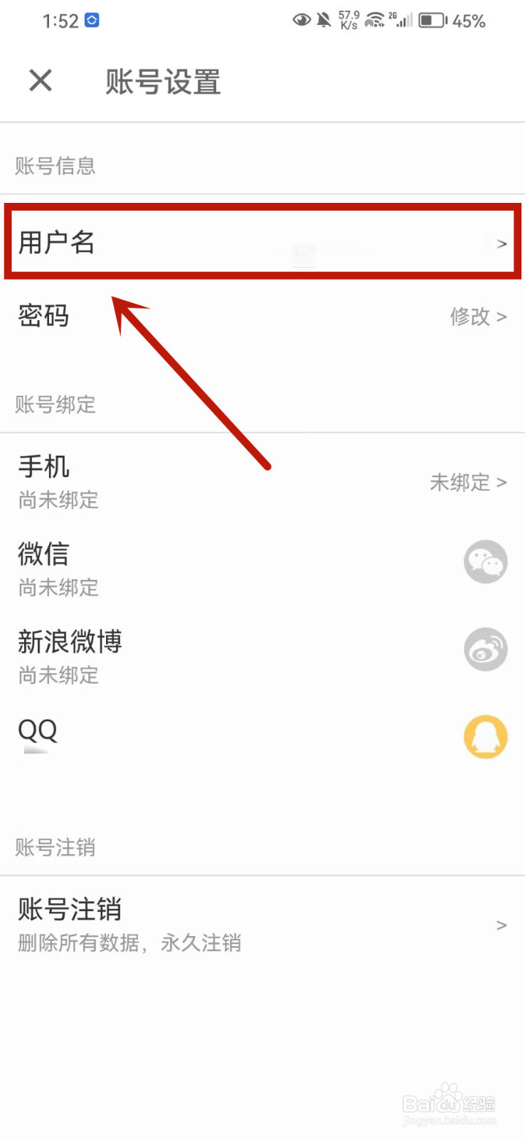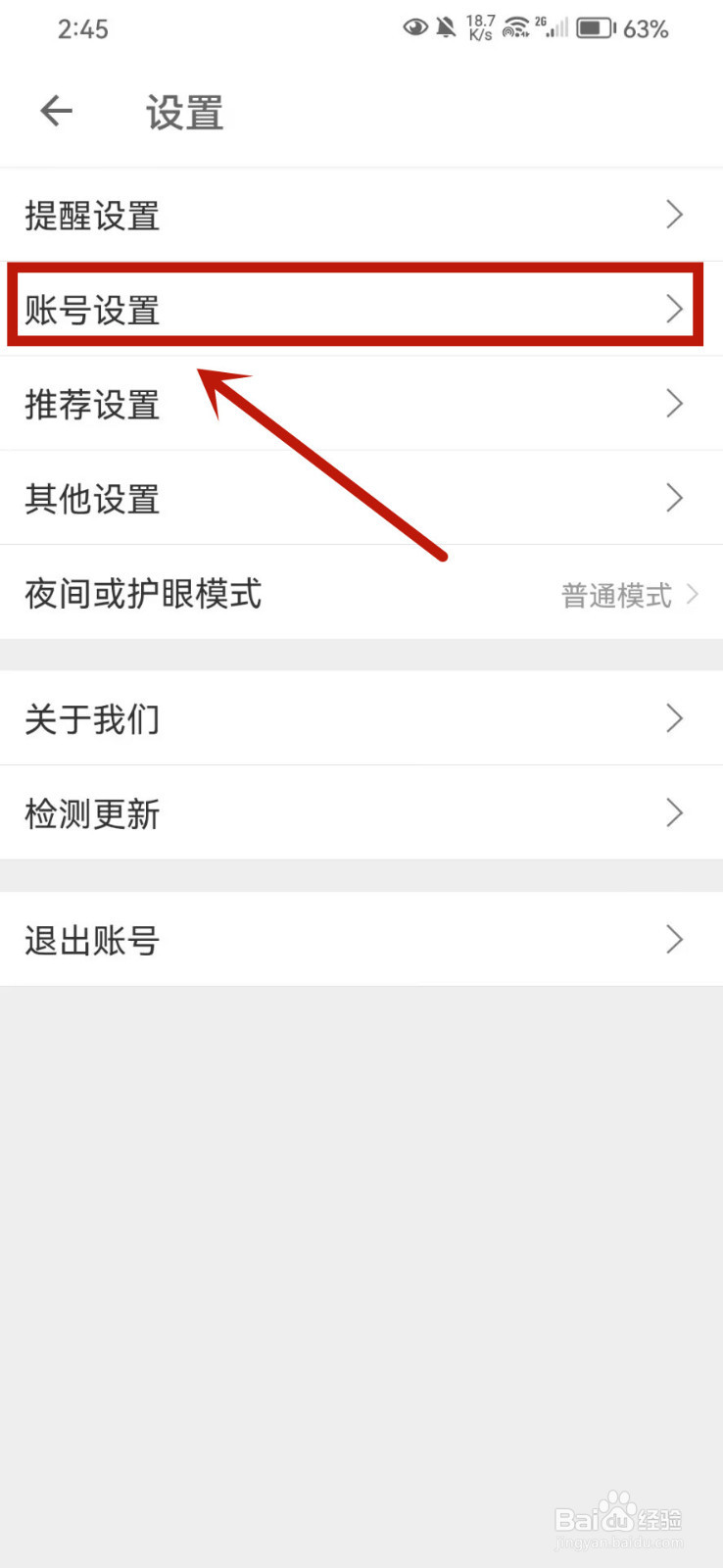 进入设置界面后,点击账号设置。