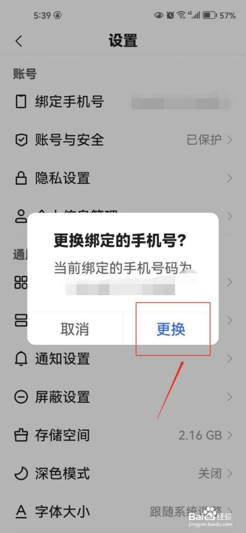 第四步:点击【绑定手机号】后,会出现更改绑定手机号,点击【更换】即可