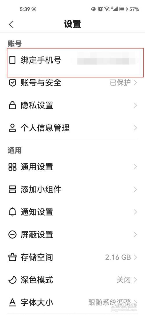 第三步:在【设置】页面中点击【绑定手机号】