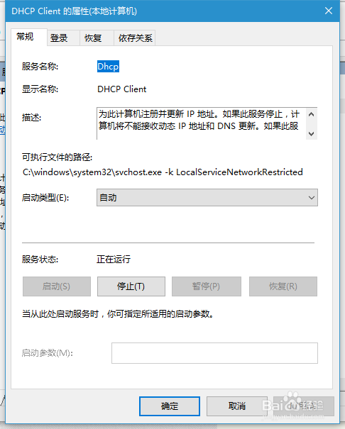 如果我们的网络出现了异常,那么也可以看下是否是因为“DHCP Client”被关闭所导致的问题,如果是,那么重启下就好了。