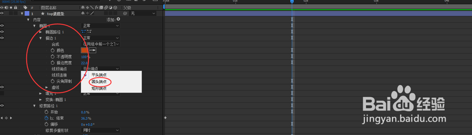 8:感觉描边的断点比较生硬 我们可以调整为椭圆形 点开椭圆描边 线段端点 改为圆头端点 效果出来啦~~