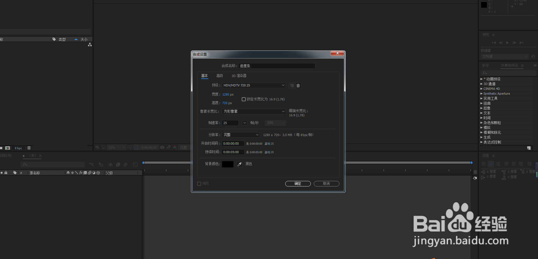 1:新建合成 预设根据自己的项目需求来定;