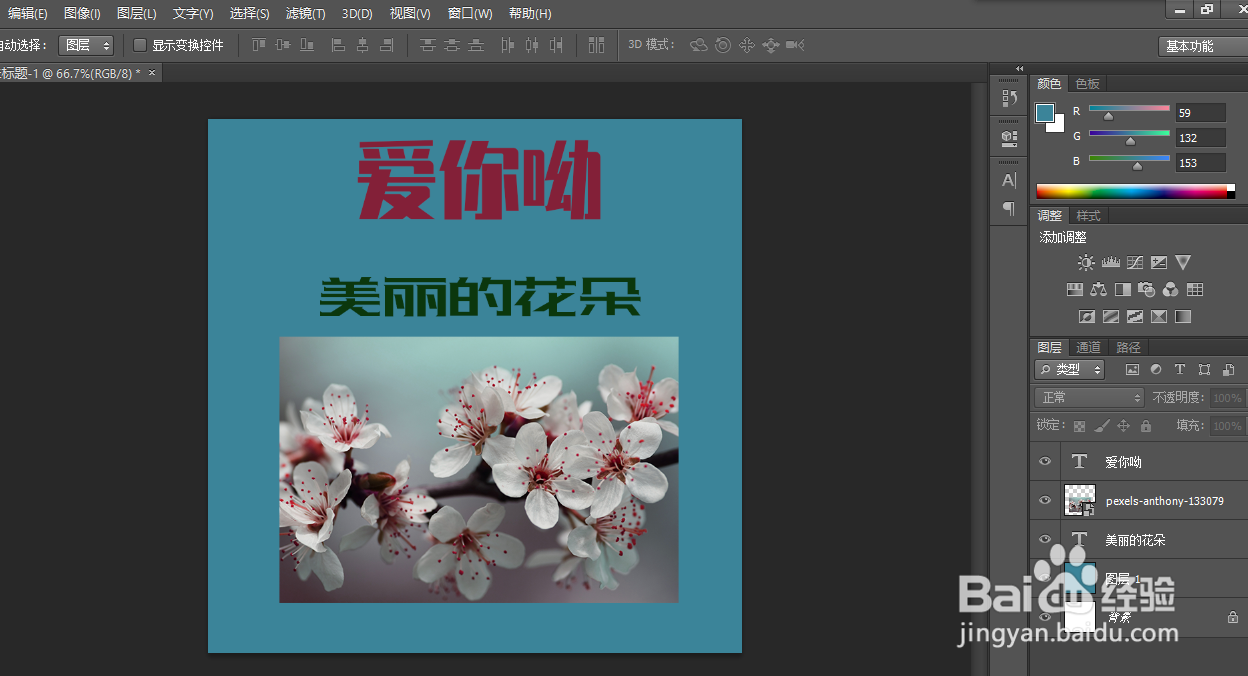 新建一个文档,选择文字工具输入文字,并拖入图片。