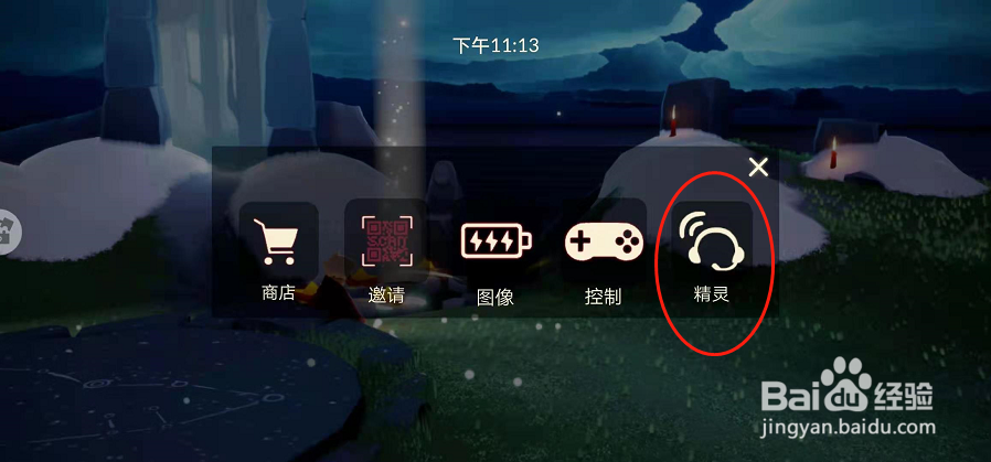 第二步,点击设置图标,选择最后一个选项【精灵】。