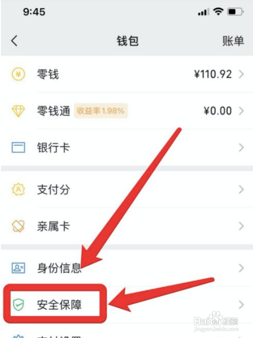 进入微信钱包,找到【安全保障】功能页面,进入新页面。