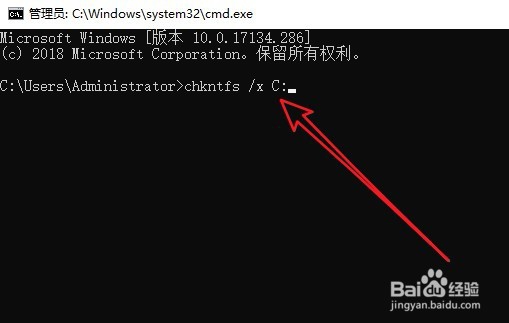 接捧侵着在打开的命令提示符窗口中输入命令chkntfs /x c: