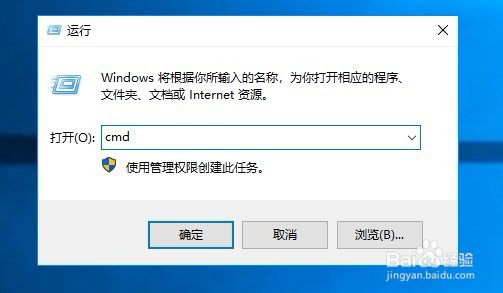 然后在打开的运行窗口中输入命令cmd后点击确定按钮。