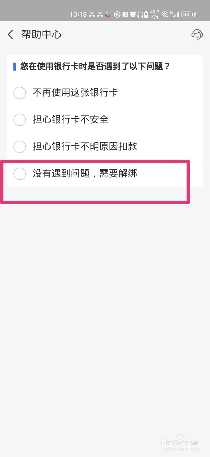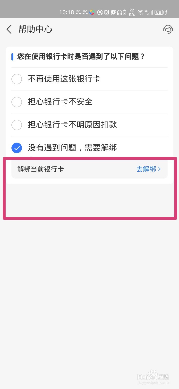 第六步:选择页面上的【没有遇到问题,需要解绑】