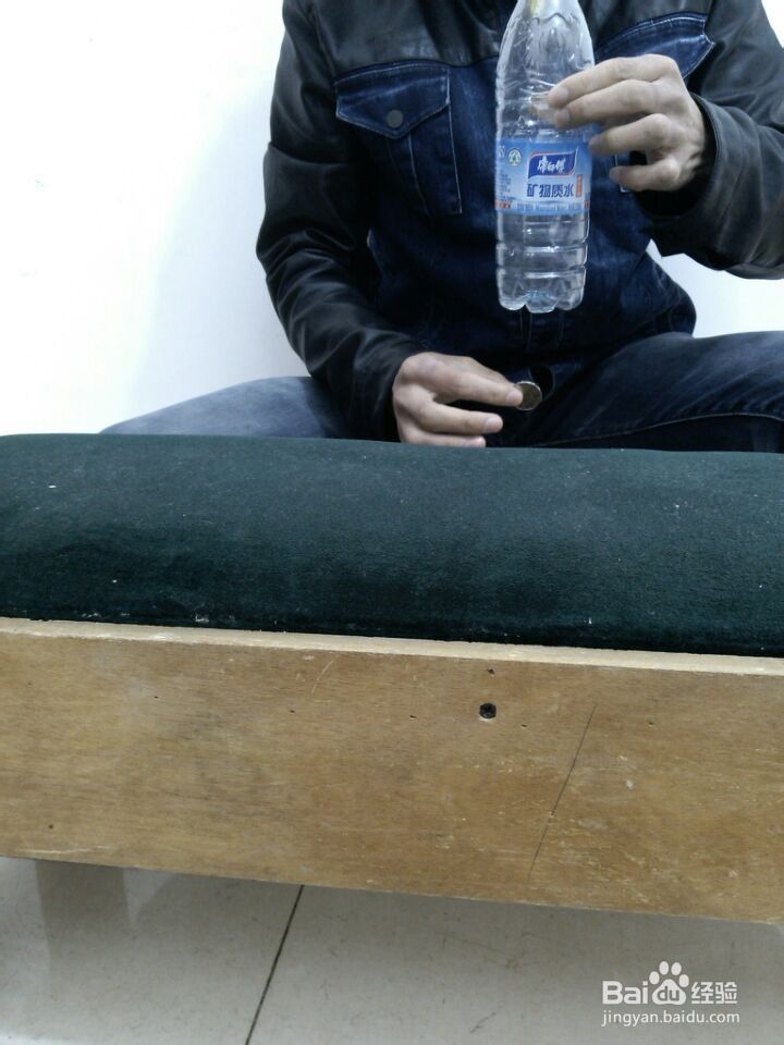 表演时,要在桌子(遮挡物)后面,一只手拿1个硬币,另一个手拿水瓶,将手中硬币用力往瓶子底部撞击。