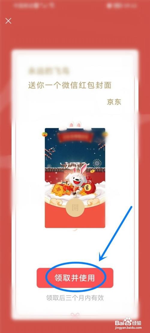 进入红包封面领取界面,找到“领取并使用”按钮就行了。