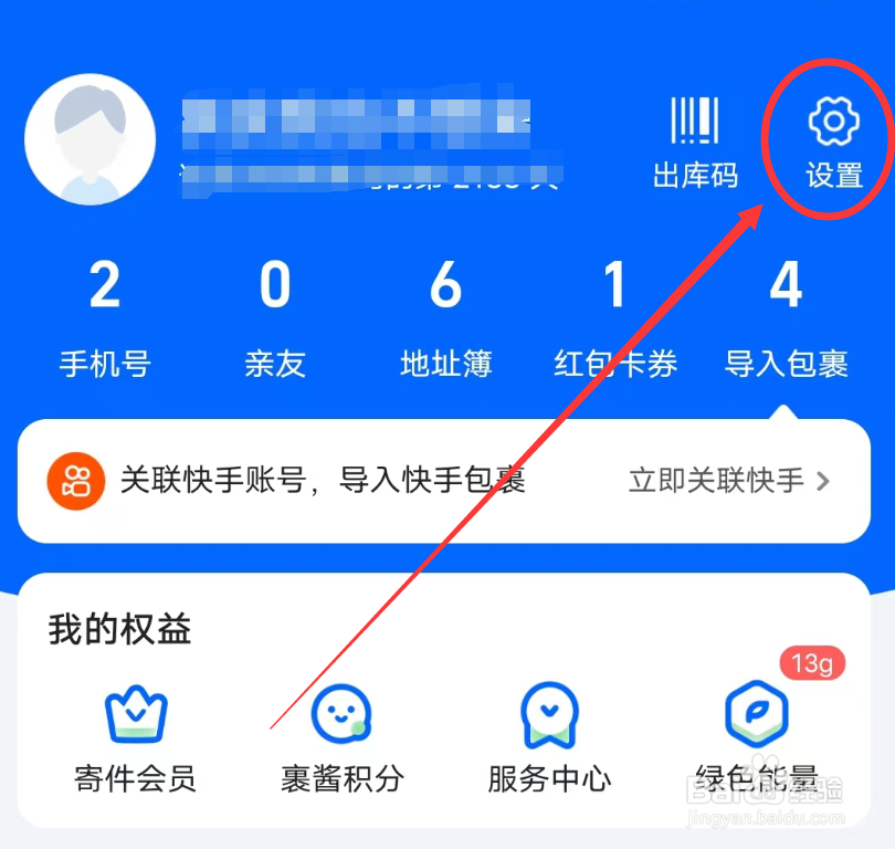 第一步:打开菜鸟APP,我的界面选择【设置】