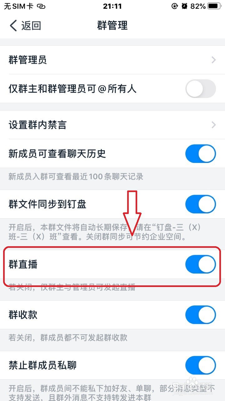 第四步:将“群直播”后面的开关按钮打开即可,如下图所示。