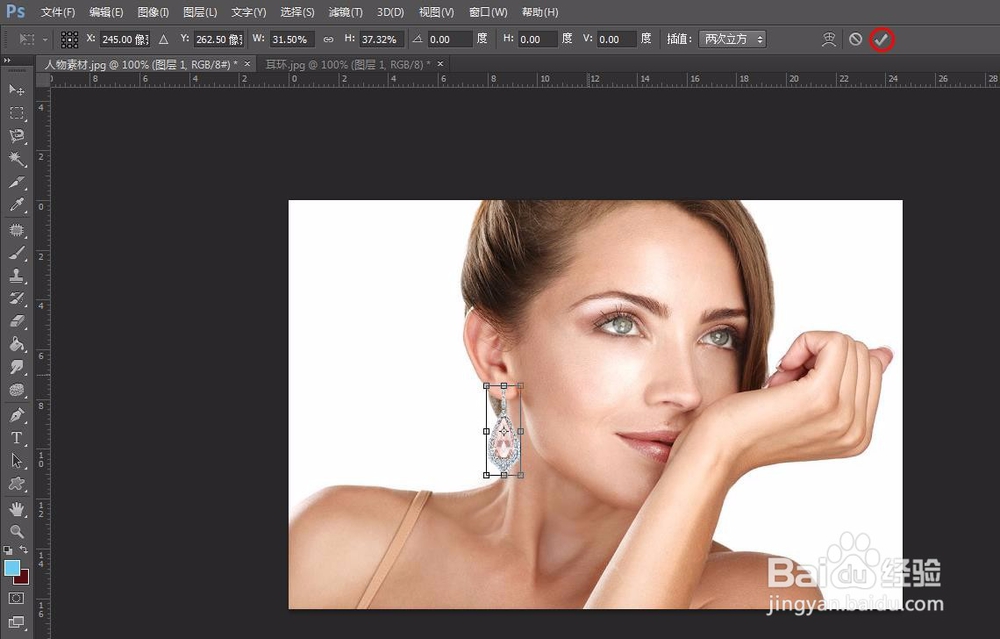第七步:按ctrl+T键将耳环调整到合适的位置,就完成了。