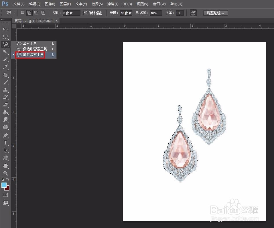 第二步:在左侧工具栏中选择“磁性套索工具”,选中耳环。