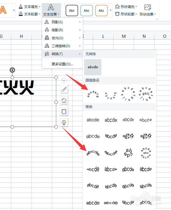 右侧扩展栏中选择需要的弧形样式,点击应用
