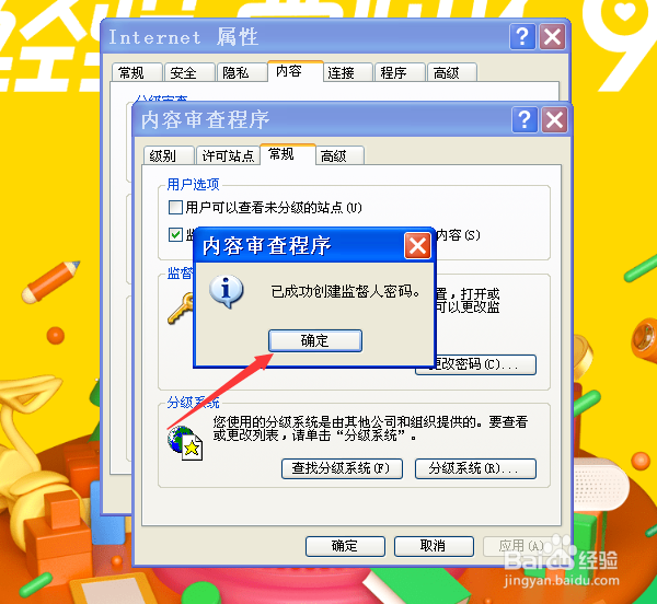 弹出【内容审核程序】提示“已成功创建监督人密码”,单击【确定】即可。