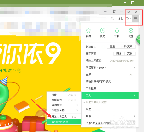 打开浏览器,点击右上角的打开菜单图标【≡】,选择【工具】—【Internet选项】。