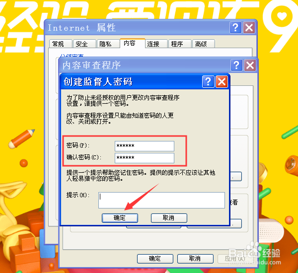 勾选【监督人可以键入密码允许用户查看受限的内容】,点击【创建密码】。
