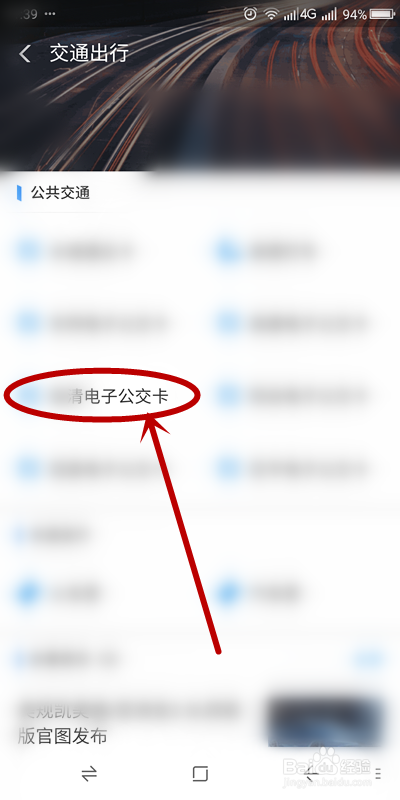 选择自己所在城市的电子公交卡选项单击