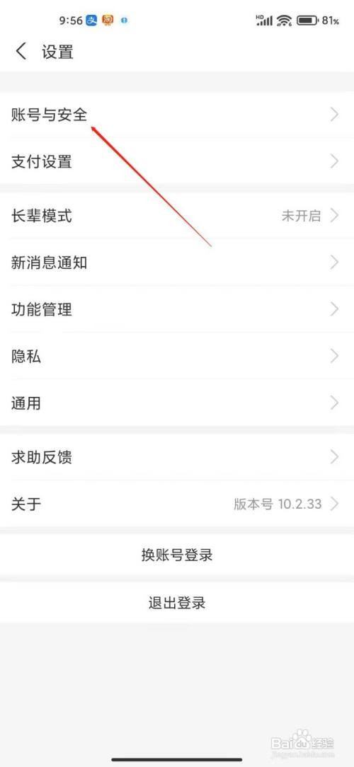 3、进入设置,点击账号与安全