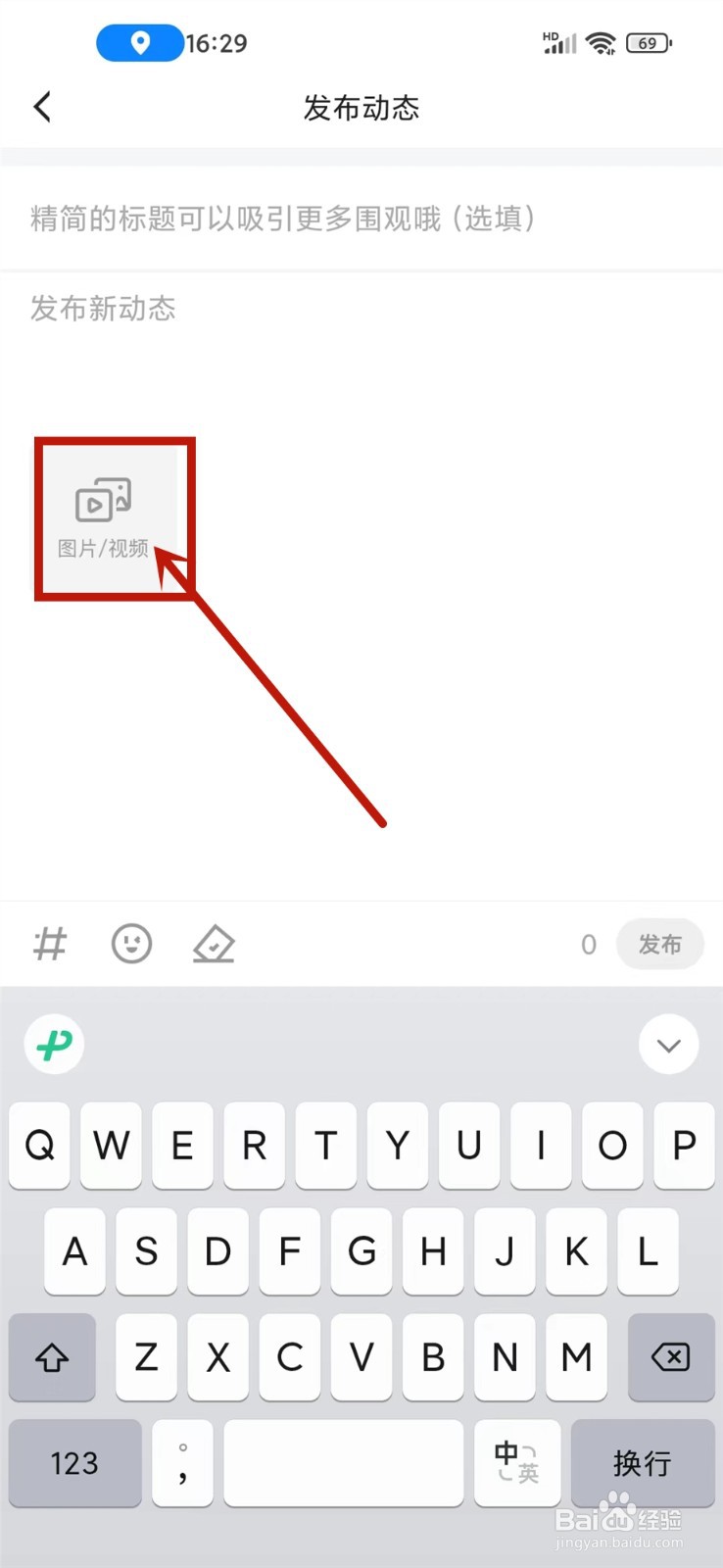 编辑动态文字,点击“发布”图标,即可发布图文动态。