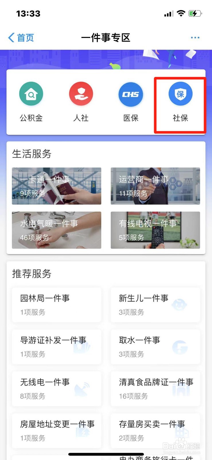 第二步:在一件事专区点击【社保】。
