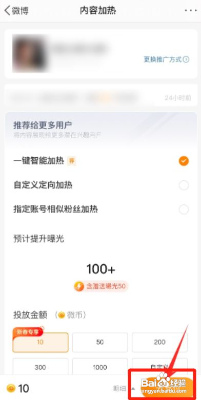 之后选择投放的金额后,选择点击去支付即可。