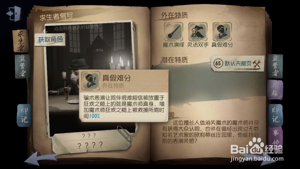 第五人格求生者-魔术师特质与技能介绍及攻略
