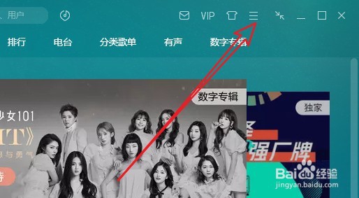 首先在电脑上打开QQ音乐软件主界面,然后点击右上角的主菜单按钮