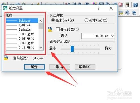 在【线宽设置】中选择你所想要选择的线宽尺寸,然后点击【确认】;