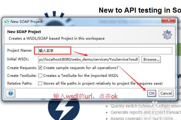 输入webservice服务端的地址,输入项目名称,名称可以根据实际的项目编写,主要用来区分不同的服务。【注意:输入的地址后面要加?wsdl】